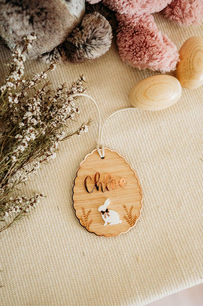 * Option to have bold writing engraved underneath. Easter Tag / First Easter 2026